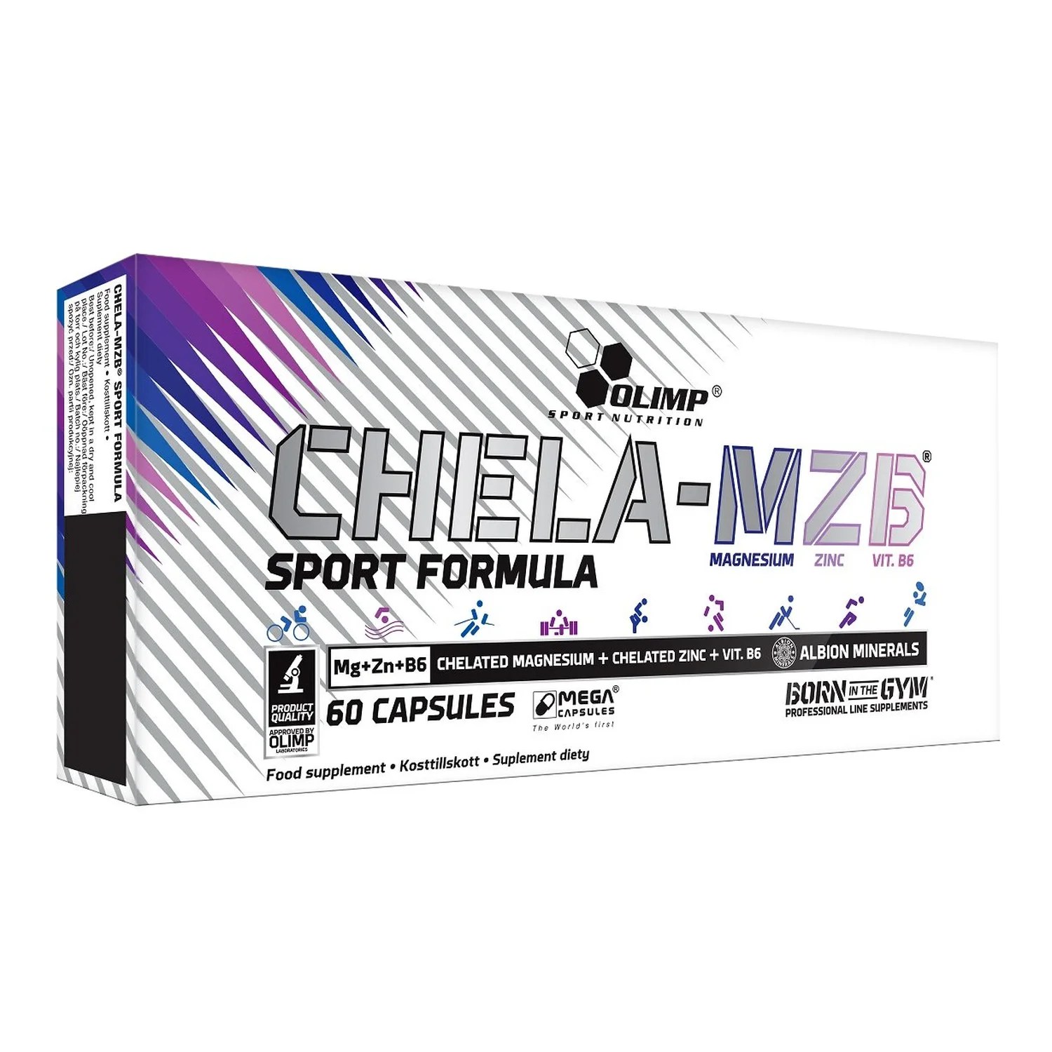 | Ingredients | Magnesium amino acid chelate (of which Magnesium), Zinc amino acid chelate (ALBION Zinc Chelazome) (of which zinc), Vitamine B6, Magnesium amino acid chelate ALBION, Zinc amino acid chelate ALBION (Zinc Chelazome), anti-caking agent – Magnesium stearate, vitamine B6 (pyridoxine HCL), capsule – gelatin. |
