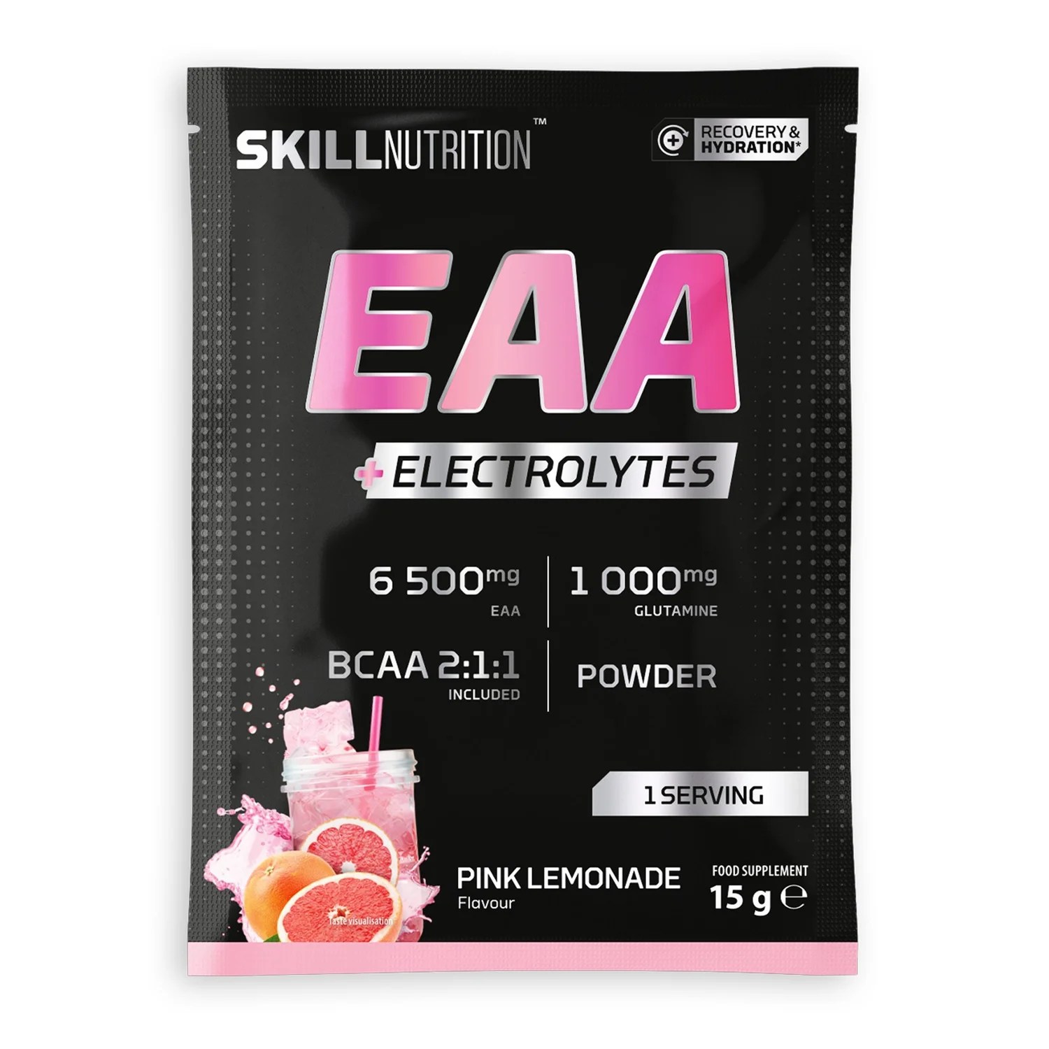 EAA + Electrolytes is a supplement that combines essential amino acids and electrolytes, created with everyday active people in mind. One serving provides 6.5 g of EAAs, including 3.8 g of BCAAs in a 2:1:1 ratio, complemented by 1,000 mg of L-glutamine and the patented AstraGin®. The electrolyte complex includes, among others, magnesium, which supports water-electrolyte balance, contributes to normal protein synthesis, and together with potassium and calcium helps muscles function properly. The product works great for strength and cardio training as well as on intense days. The easy-to-dissolve powder and refreshing flavor make supplementation a simple part of your daily routine.