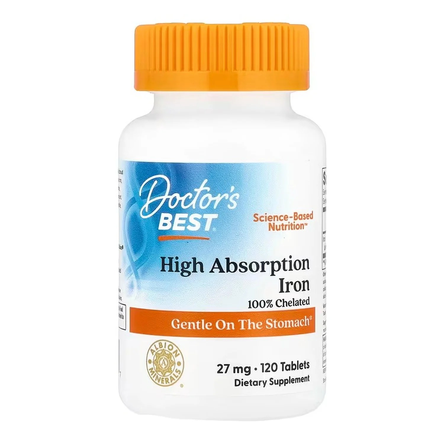Doctor’s Best High Absorption Iron with Ferrochel contains chelated iron to help increase bioavailability. Chelation helps iron to be optimally absorbed by our body, and is well-tolerated by the digestive system. Iron is an essential mineral that helps in the production of normal red blood cells. It is an important component of hemoglobin which carries oxygen throughout the body.