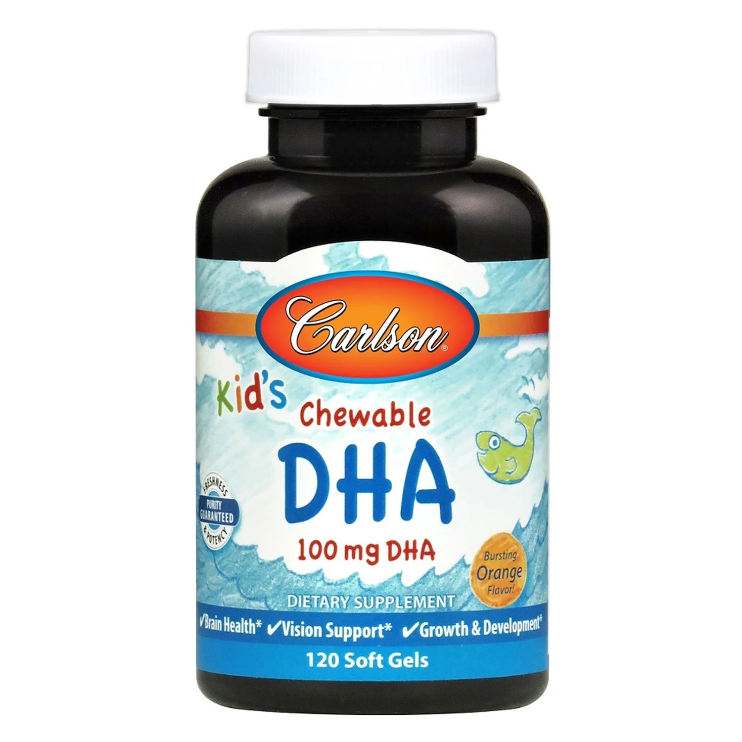 ​The omega-3 fatty acid DHA promotes healthy brain development and vision in growing children. Kid’s Chewable DHA is a fun and tasty way to receive these benefits. Each soft gel bursts with delicious orange flavor from natural fruit sources. And like all Carlson omega-3s, freshness, potency, and purity is guaranteed.​