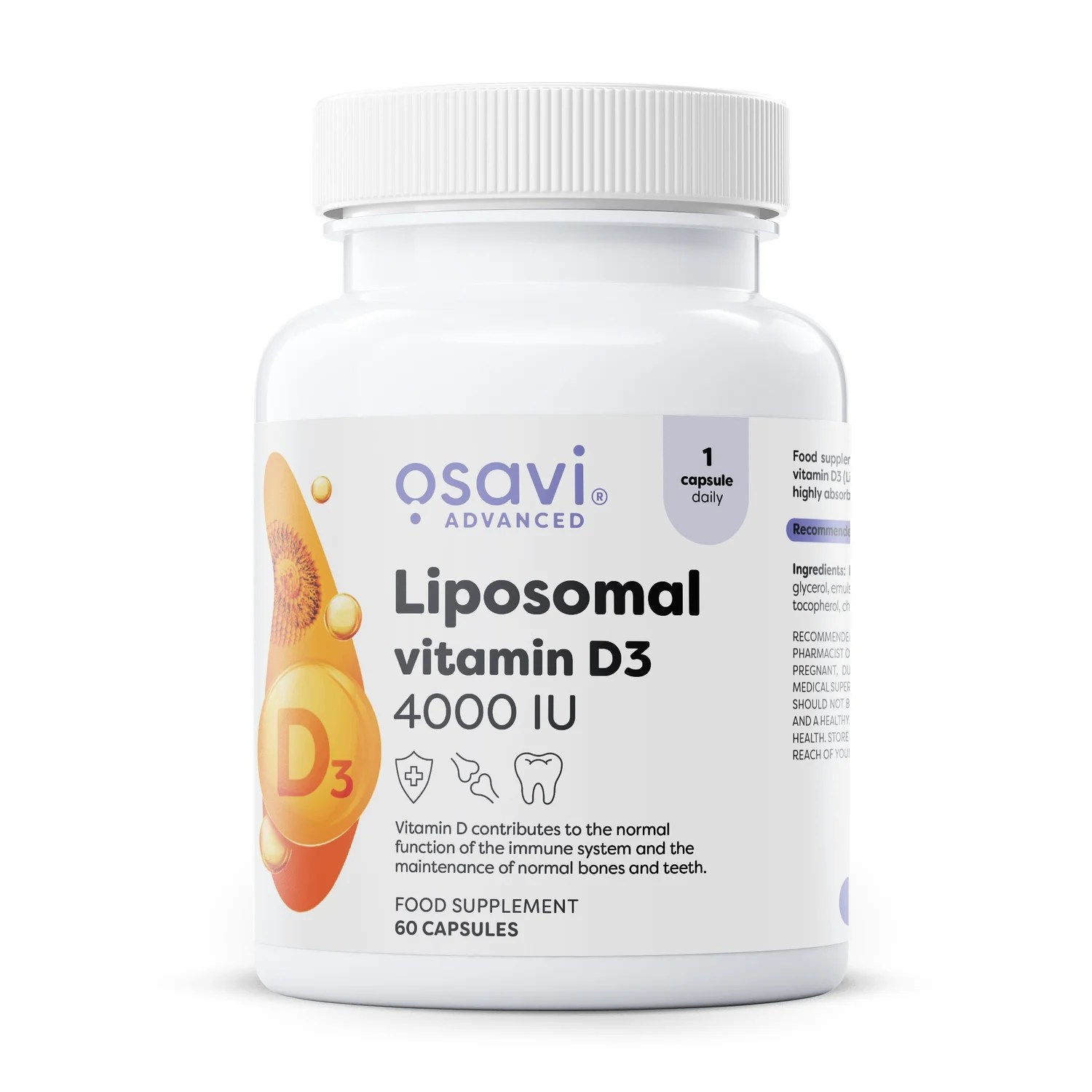 Do you want to support your immunity? Are you wondering how to take care of your bones, teeth, and muscles, especially when there is a lack of sunlight for cutaneous synthesis or when you lead an active lifestyle? Choose Liposomal Vitamin D3 4000 IU, a stomach-friendly supplement that replenishes your diet with this