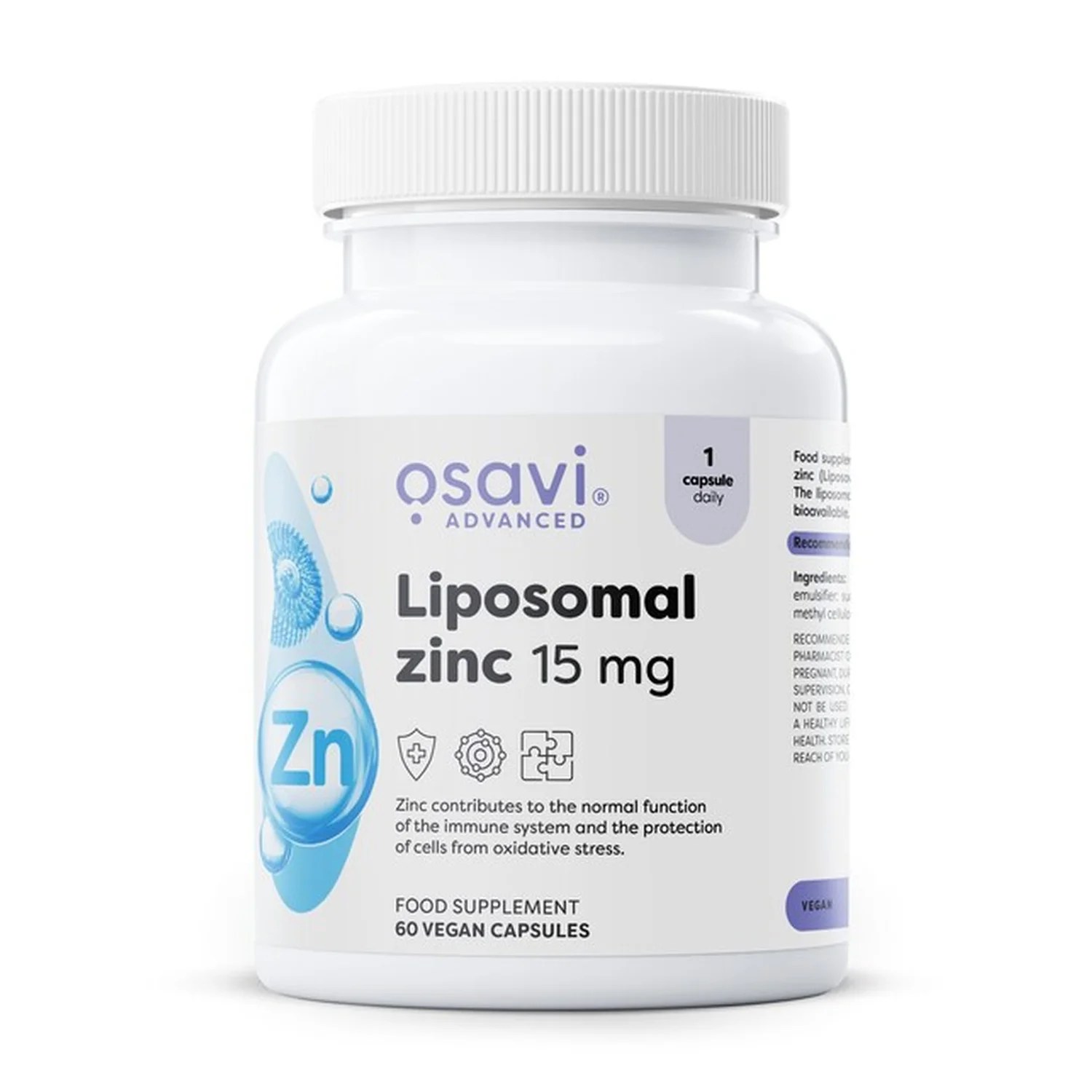 -Contains Liposovit ®-Zn – liposomal form of zinc, which is more bioavailable due to liposomes facilitating absorption into cells.