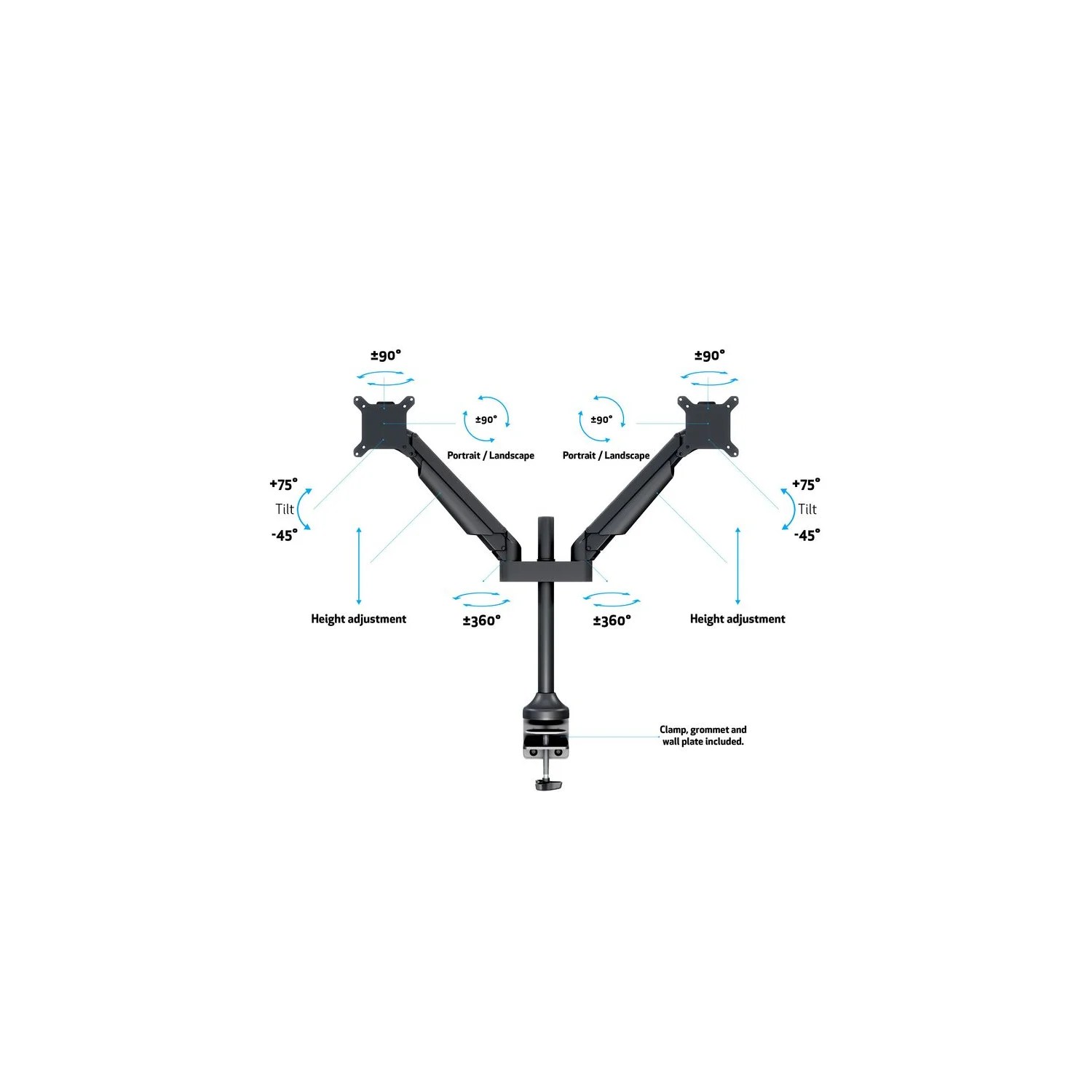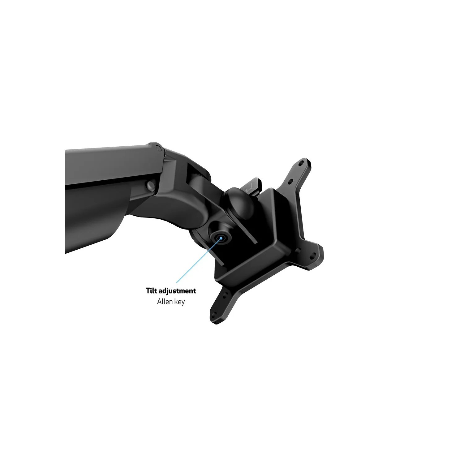 The M Vesa Gas Lift Arm Dual holds to your standard workdesk (max 50mm), or assemble it using a workdesk thru hole technique.