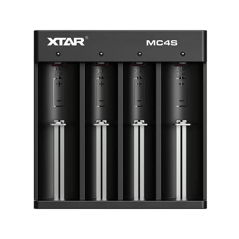 The Xtar MC4S can charge 4 batteries on the go at the same time. It automatically distributes the most effective charging current to each bay.